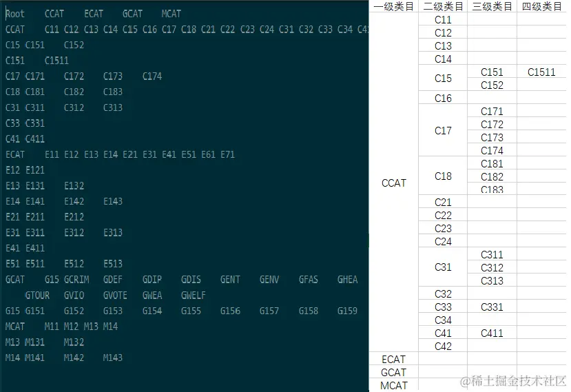 图2 类目体系文件和EXCEL展示类目体系