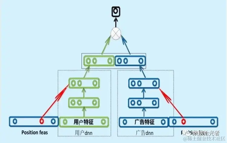 百度的双塔模型分别使用复杂的网络对用户相关的特征和广告相关的特征进行embedding,分别形成两个独立的塔,在最后的交叉层之前用户特征和广告特征之间没有任何交互。这种方案就是训练时引入更多的特征完成复杂网络离线训练,然后将得到的user embedding和item embedding存入redis这一类内存数据库中。线上预测时使用LR、浅层NN等轻量级模型或者更方便的相似距离计算方式。这也是业界很多大厂采用的推荐系统的构造方式。