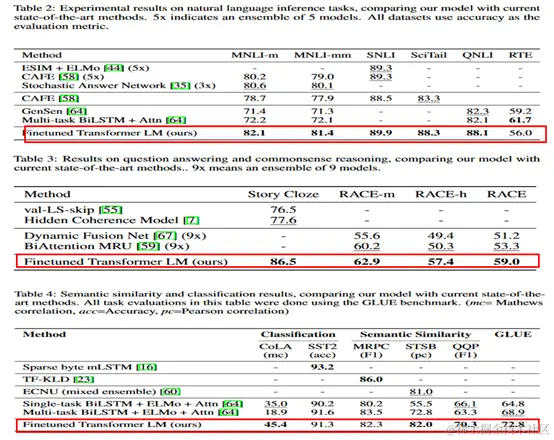 GPT模型效果还是非常出色的,12个任务数据集中9个达到了最好效果。下面是GPT论文中模型效果实验图: