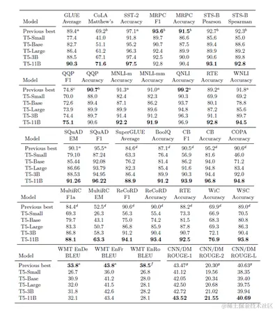 T5最牛逼的不仅仅是提出了一个通用的预训练模型框架,最可怕的是这种模型效果还好到惊人。下面是T5模型在2019年出来时的榜单战绩图: