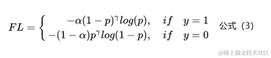 上面基于类别加权Loss虽然在一定程度上解决了样本不均衡的问题,但是实际的情况是不仅样本不均衡会影响Loss,而且样本的难易区分程度也会影响Loss。基于这个问题2017年何恺明大神在论文《Focal Loss for Dense Object Detection》中提出了非常火的Focal Loss,下面是Focal Loss的计算公式: