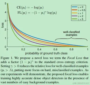 关于参数γ的设置问题,Focal Loss的作者建议设置为2。下面是不同的参数值γ样本难易程度对Loss的影响对比图: