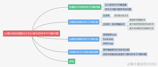 本篇主要从理论到实践解决文本分类中的样本不均衡问题。首先讲了下什么是样本不均衡现象以及可能带来的问题;然后重点从数据层面和模型层面讲解样本不均衡问题的解决策略。数据层面主要通过欠采样和过采样的方式来人为调节正负样本比例,模型层面主要是通过加权Loss,包括基于类别Loss、Focal Loss和GHM Loss三种加权Loss函数;最后讲了下其他解决样本不均衡的策略,可以通过调节阈值修改正负样本比例和利用半监督或自监督学习解决样本不均衡问题。需要说明下上面解决样本不均衡问题的策略不仅仅适用于文本分类任务,还可以扩展到其他的机器学习任务中。对于希望解决样本不均衡问题的小伙伴可能有所帮助。