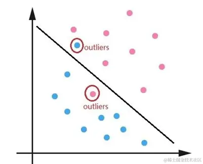 Focal Loss主要结合样本的难易区分程度来解决样本不均衡的问题,使得整个Loss的曲线平滑稳定的下降,但是对于一些特别难区分的样本比如离群点会存在问题。可能一个模型已经收敛训练的很好了,但是因为一些比如标注错误的离群点使得模型去关注这些样本,反而降低了模型的效果。比如下面的离群点图: