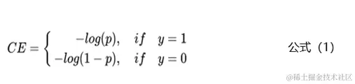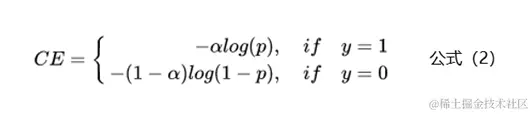 上面主要从数据的层面来解决样本不均衡的问题,本节主要从模型层面解决样本不均衡的问题。相比于控制正负样本的比例,我们还可以通过控制Loss损失函数来解决样本不均衡的问题。拿二分类任务来举例,通常使用交叉熵来计算损失,下面是交叉熵的公式: