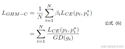 说完了梯度密度GD(g)的计算公式,下面就是GHM Loss的计算公式: