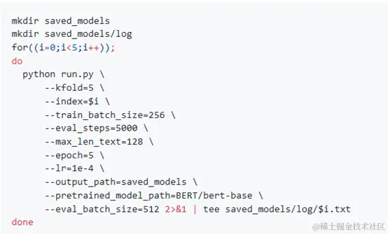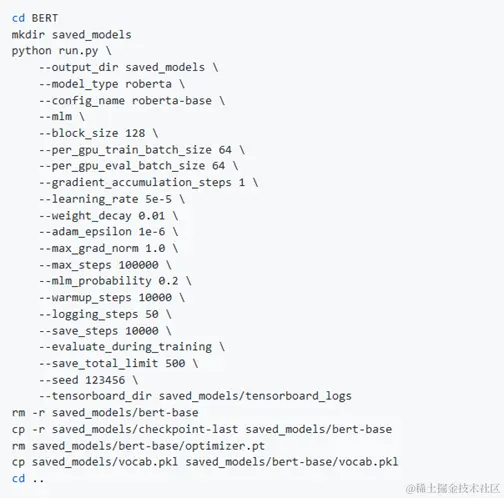 经过Word2vec预训练之后就是预训练BERT了,下面是预训练的指令: