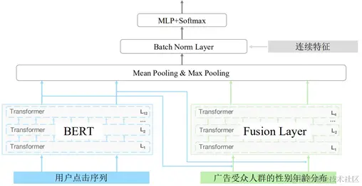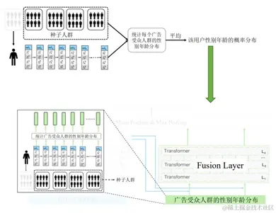 通过融合层来计算每个广告的受众人群的年龄和性别分布,然后利用多层Transformer模型来融合概率分布和BERT的语义表示可以有效的提升模型的性能。