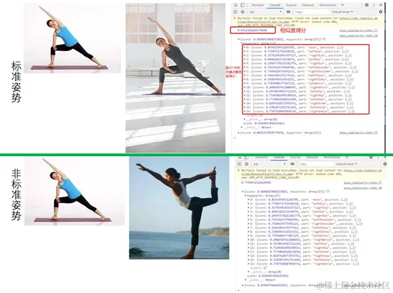 - 实际应用中会发现传入同样两张图片得到的姿势相似度得分可能不同。经过排查发现主要是因为图片加载速度导致。因为模型是通过js直接部署在网页上,所以需要保证两张图片加载完成之后再调用模型计算姿势的相似度得分就可以解决了。