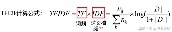 基于统计的方法主要代表是词频逆文档频率TFIDF算法。TFIDF主要用来衡量一个词对文档的区分程度,关于TFIDF算法的原理非常简单,咱们通过一个例子来解释。一般情况下一段文本中出现次数越多的词越可能是关键词,但是对于一些常见的比如“你”、“我”、“他”之类的词可能在很多文档中都多次出现,但是这些词却不属于关键词。所以我们的目标是要找到那些在当前文档中出现次数很多,但是在大多数文档中出现次数很少的词作为当前文档的关键词。 对应到TFIDF算法就包括两部分,第一部分是计算词频TF,这部分就是计算各个词在当前文档中出现的次数;第二部分是计算逆文档频率IDF,这部分是计算词在文档库中的普遍程度,作用是如果一个词在大多数文档中都出现,那么对应的IDF的值就会比较小,说明这个词大概率是通用性比较强但区分性比较差的混子词。评价一个词是当前文档中的关键词是需要在当前文档中出现的次数比较大(TF比较大),同时在大多数文档中出现次数比较少的词(IDF比较大)。对应的数学公式就是如下所示:
