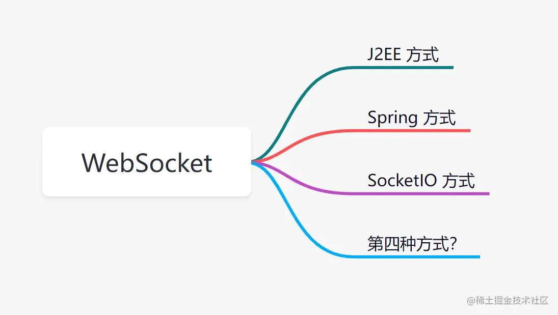 上面的思维导图已经给大家列出了三种使用 WebSocket 的方式,下文会对它们的特点进行一一解读,不同的方式具有不同的特点,我们先按下不表。