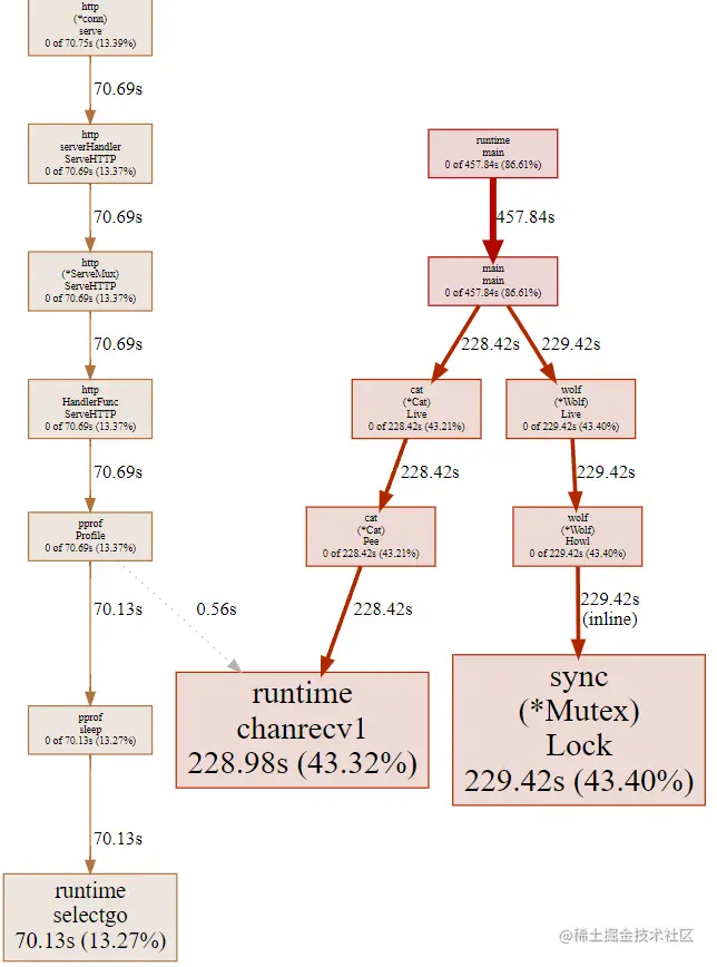 - 执行命令go tool pprof -http=:8080 "http://localhost:6060/debug/pprof/profile?seconds=10"