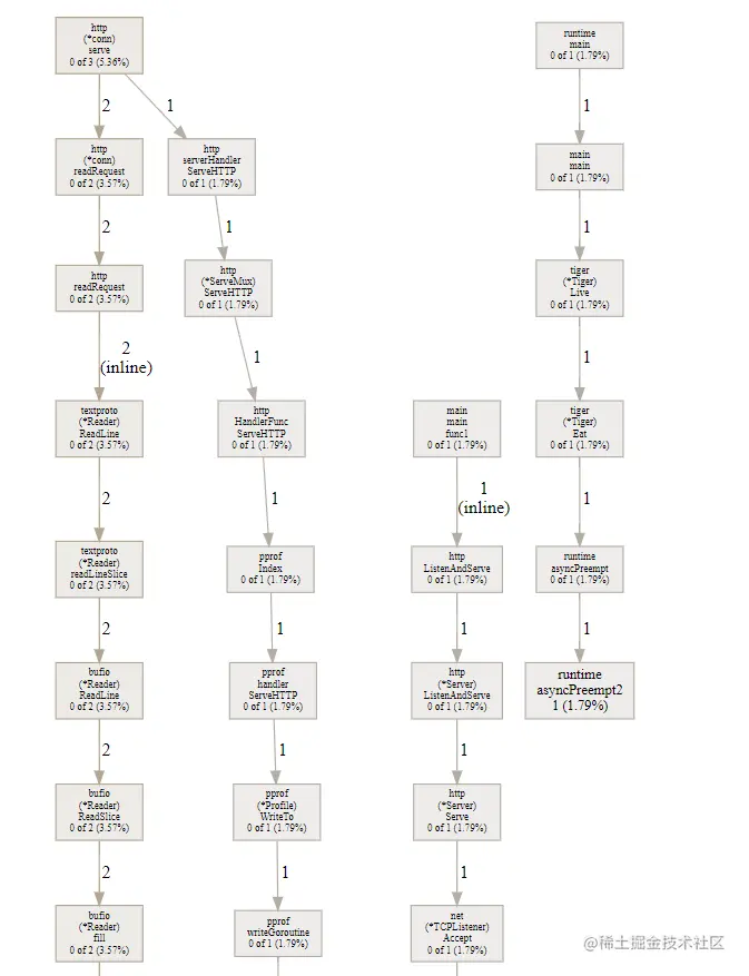 - go tool pprof -http=:8082 "http://localhost:6060/debug/pprof/goroutine"