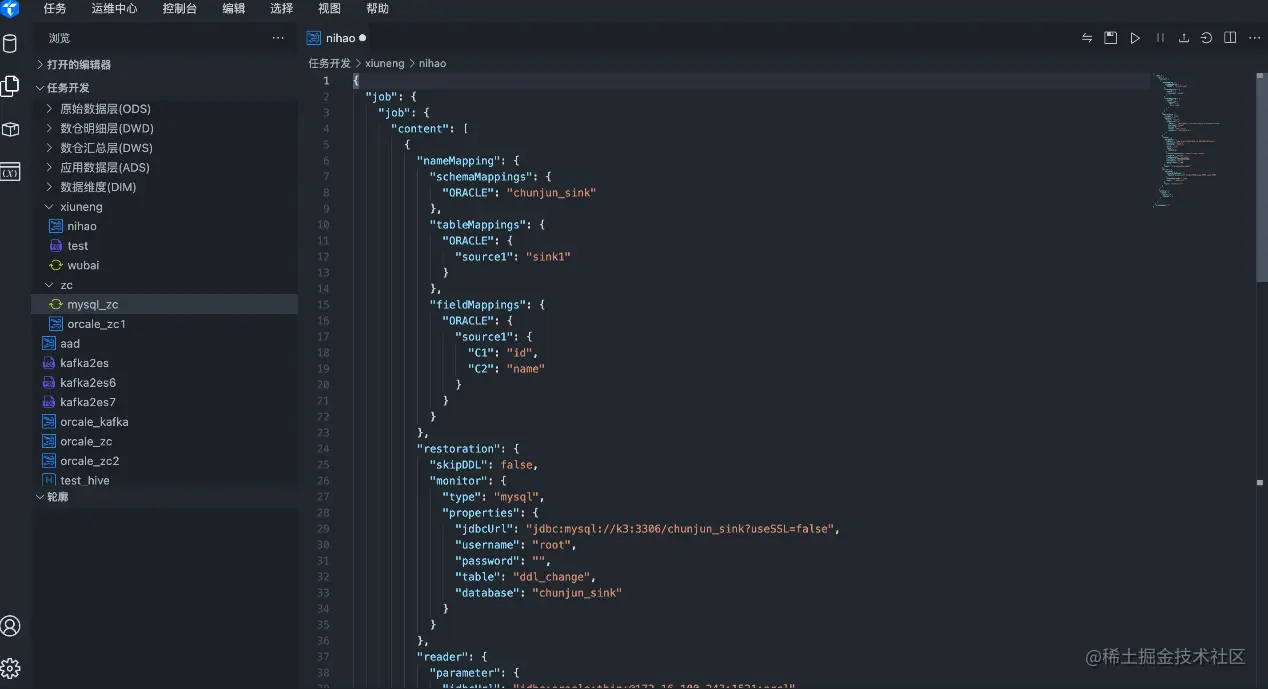 数据同步任务除向导模式外,1.1 版本新增数据同步脚本模式。脚本模式通过 json 的方式配置,无需依赖 datasourcex 的支持的数据源,直接通过 json 配置的方式提交任务,脚本模式的 json 格式无缝兼容 ChunJun 的数据格式,用户可以通过脚本模式调试各类数据源的数据同步。