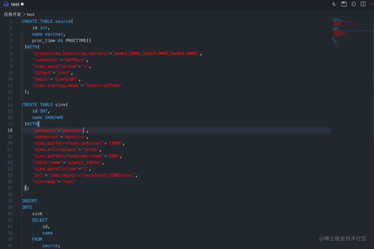 新增 Flink SQL 任务,通过标准 SQL 语义的开发帮助快速完成数据任务的配置工作。