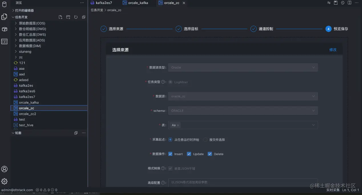 新增实时采集任务,支持将 MySQL、Oracle 的数据同步至 Kafka。