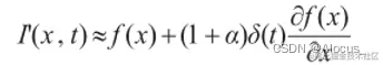 上式子表明运动放大的整个过程,f(x)在时刻t的位移δ (t)被放大了(1+α)倍