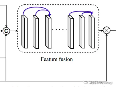 最后是进行concat操作生成9通道特征图送入一个特征融合层融合为3通道,再经过简单地卷积调整,生成中间结果output,然后与输入进行相乘跳连,生成最终结果。