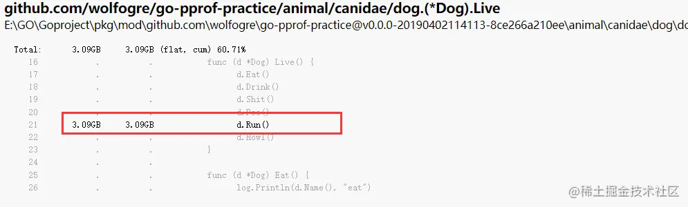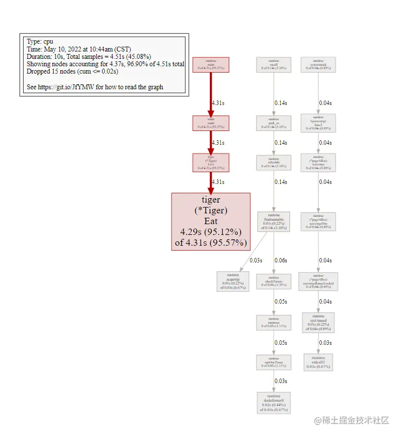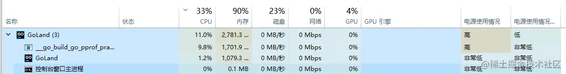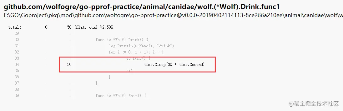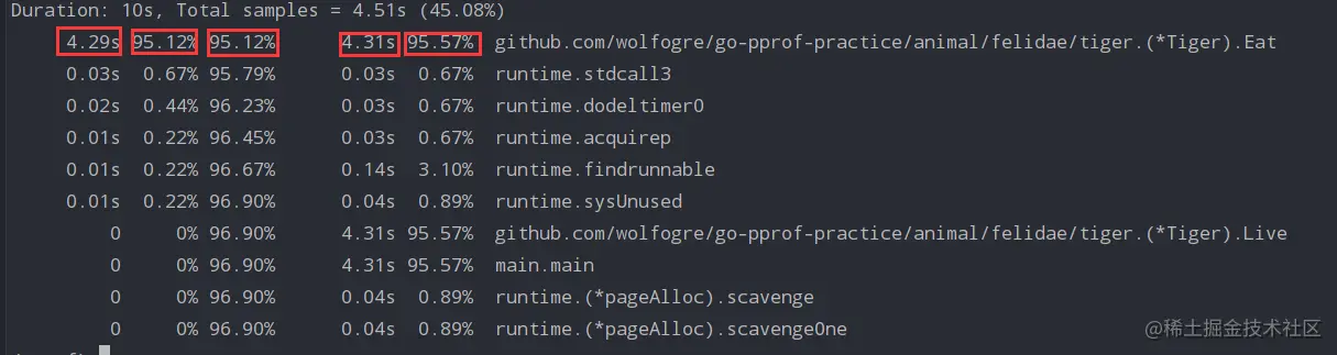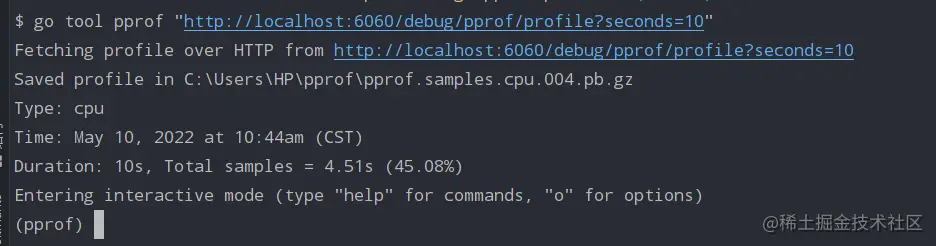终端输入 go tool pprof "http://localhost:6060/debug/pprof/profile?seconds=10"
