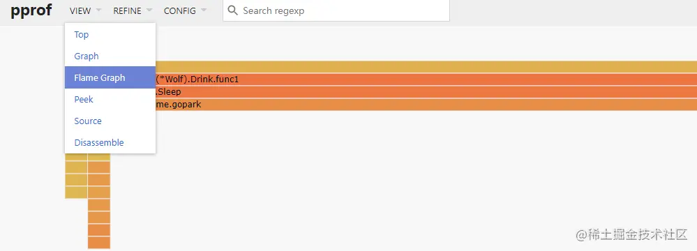 - 每一块代表一个函数,越长代表占用CPU时间更长