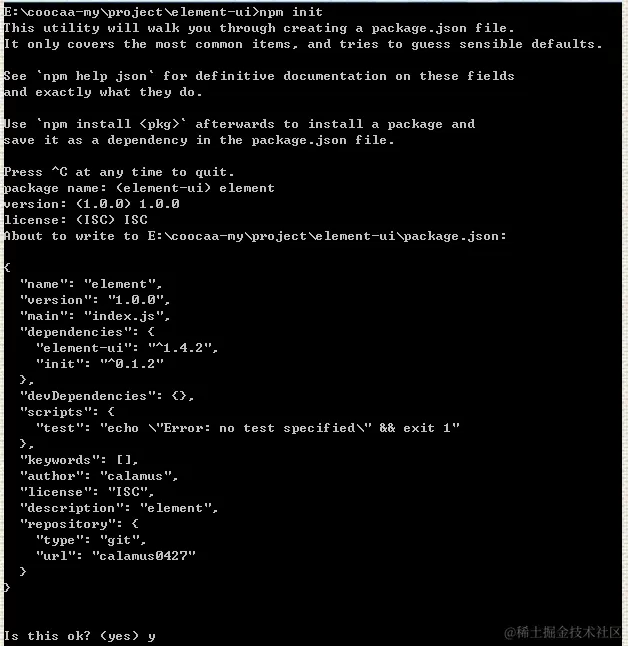 node输入命令行 npm i element-ui -S