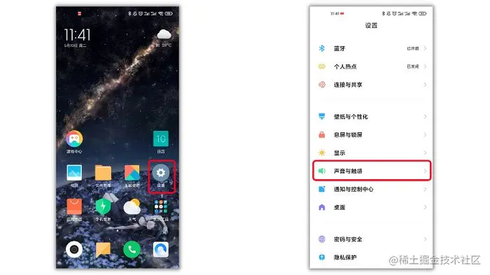 步骤1.打开小米手机的【设置】,随后在里面找到“声音与触感”这个选项进入(由于系统差异,有些则显示为“声音与振动”);