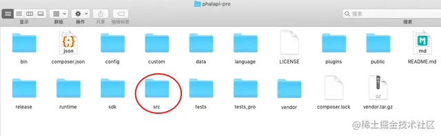 接口大师基于 PhalApi 开源接口框架,所以它的目录结构和开源版类似。PHP的接口源代码主要在src目录下。