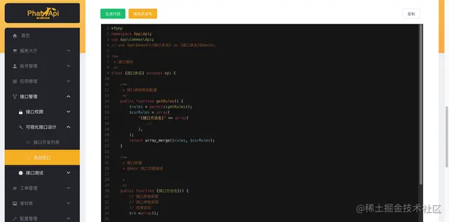 其中,App开放接口,这部分就是你给你的客户提供的接口,用来放置你的api数据服务接口。最后实时更新的在线接口文档(自动生成,不需要开发者人工维护),类似如下: