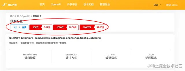 进入到在线接口文档详情页,可以看到具体的接口流量套餐。