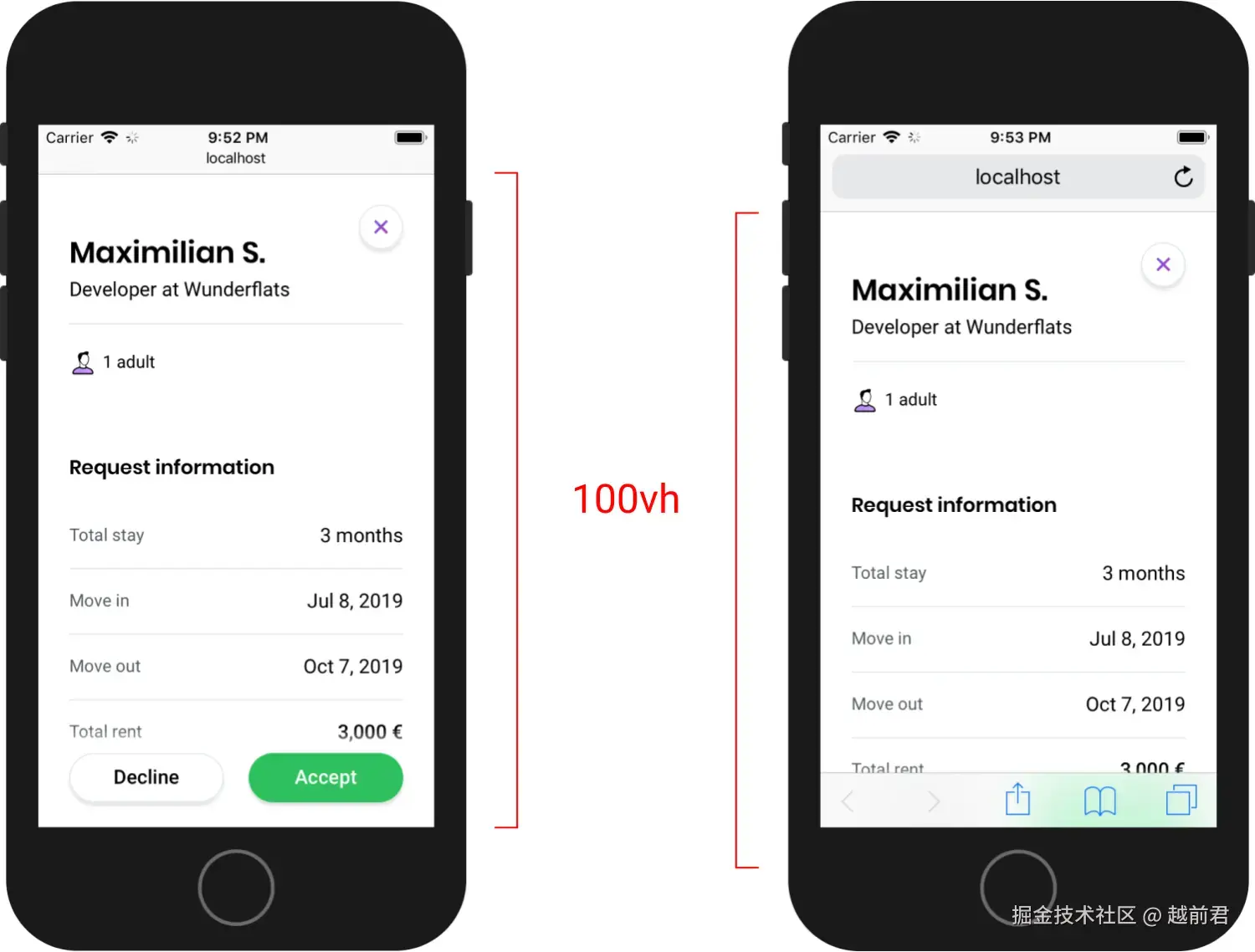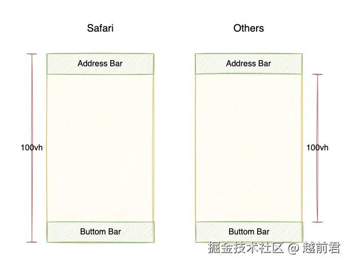 在 Safari 浏览器中,100vh 如下图所示(出自):