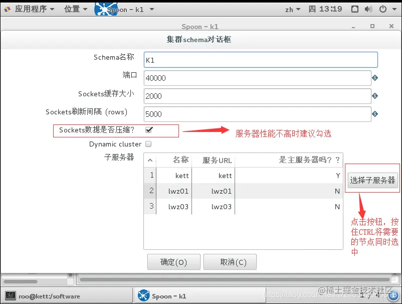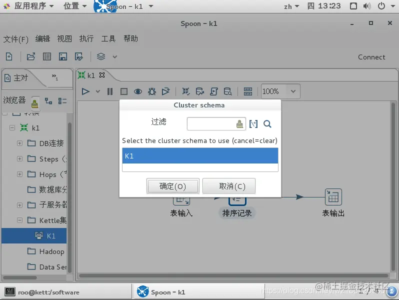 1.进入kettle工具,创建转换,添加子服务器,注意,主节点也要添加到子服务器中