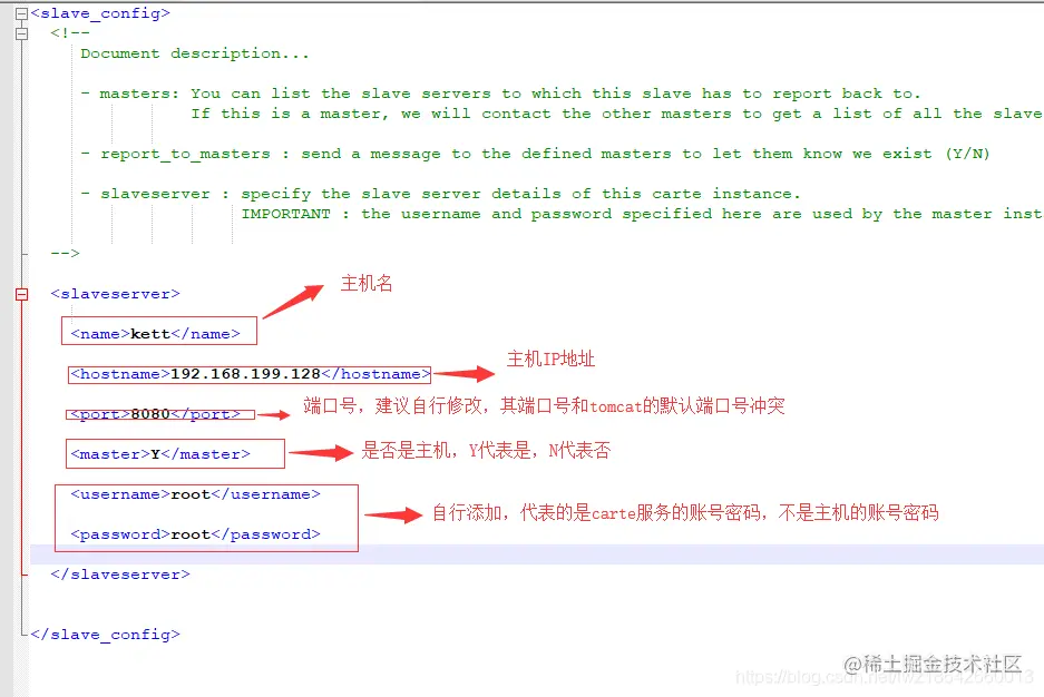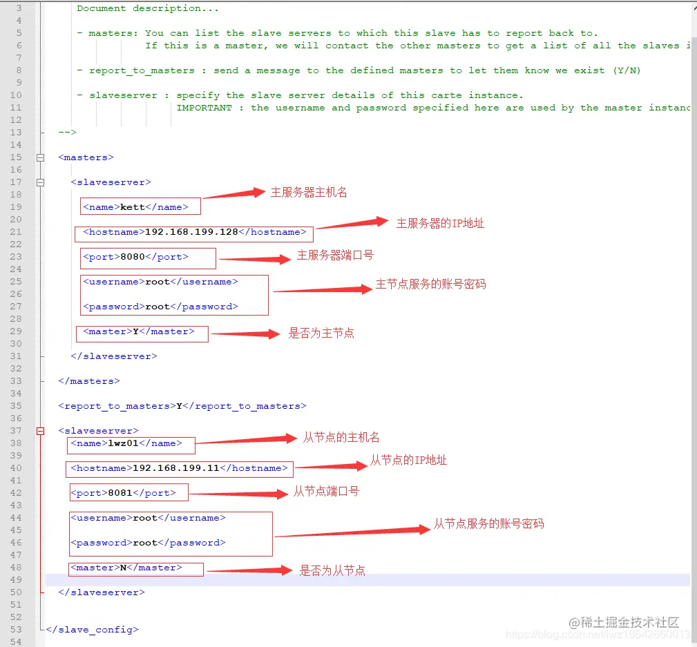 1.在解压后的kettle文件夹的pwd文件夹下,编辑carte-config-master-8080.xml文件。内容如图