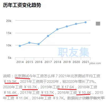 没必要谈论测试是否有前景和数据。只要测试行业的工资不断上升,就有答案。现在我们来展示一下中立平台职友多年来的工资截图,请看: