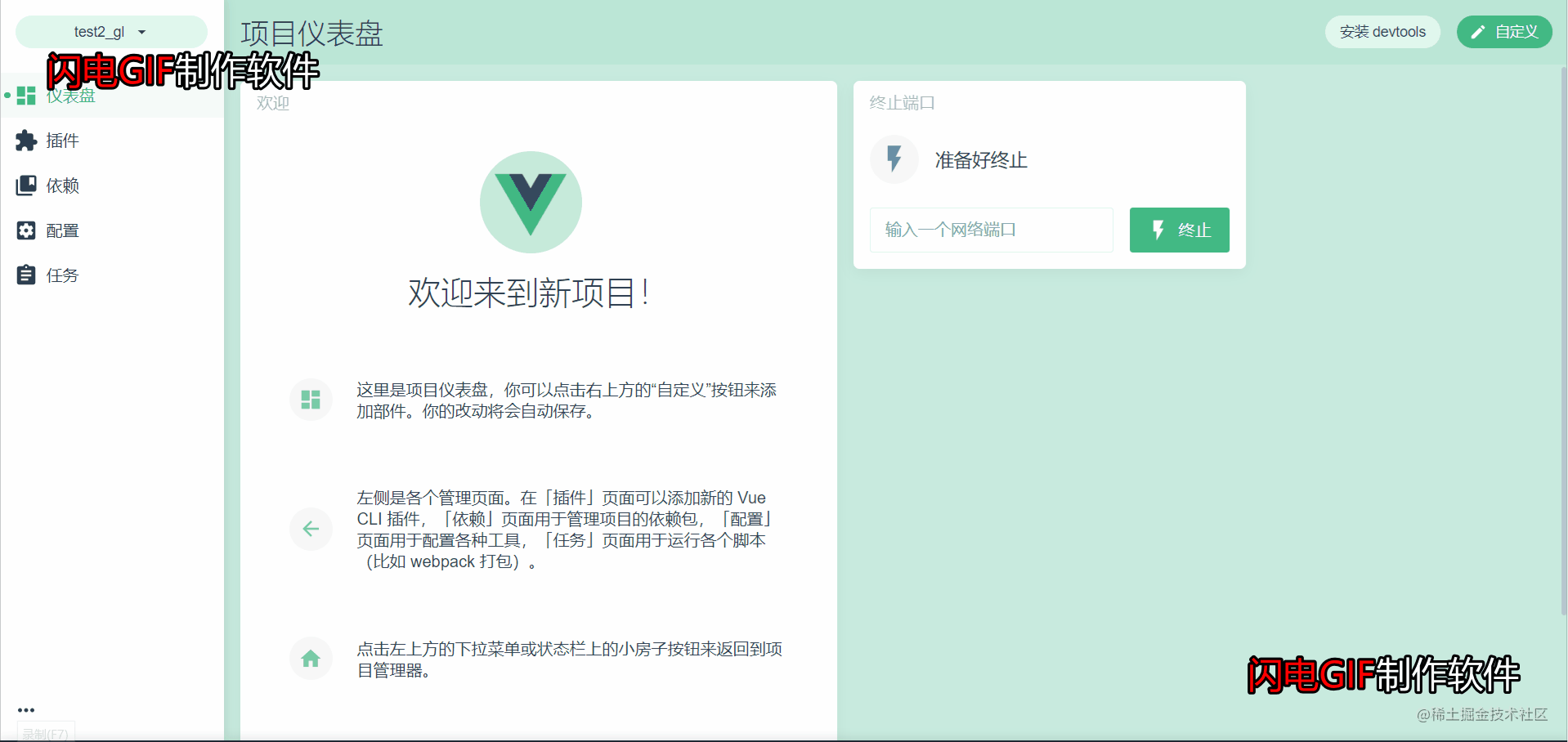 好,以上我们就完成了Vue和VueCLI的安装。现在我们就可以直接使用Vue UI了。
