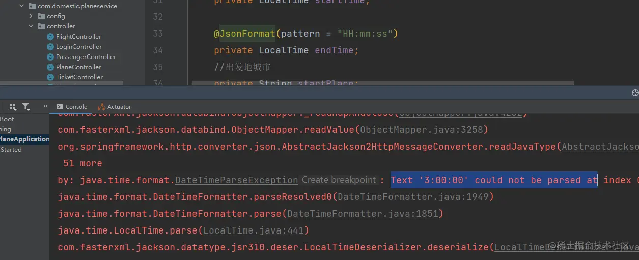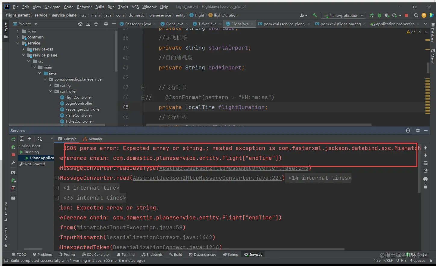 at [Source: (PushbackInputStream); line: 4, column: 14] (through reference chain: com.domestic.planeservice.entity.Flight["endTime"])