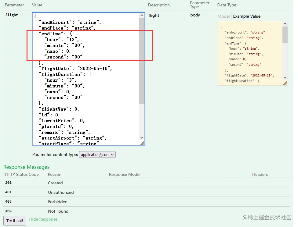今天在测试新增航班信息接口,测试传输json数据如图:
