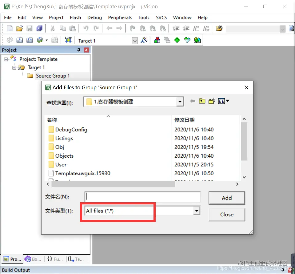 工程目录下的Object文件和Listings文件是Keil5生成中间文件用的,将头文件及启动文件添加到工程中