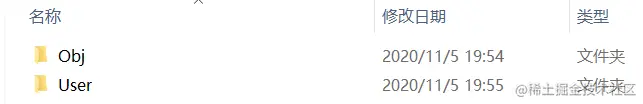 1、创建两个文件夹Obj和User
