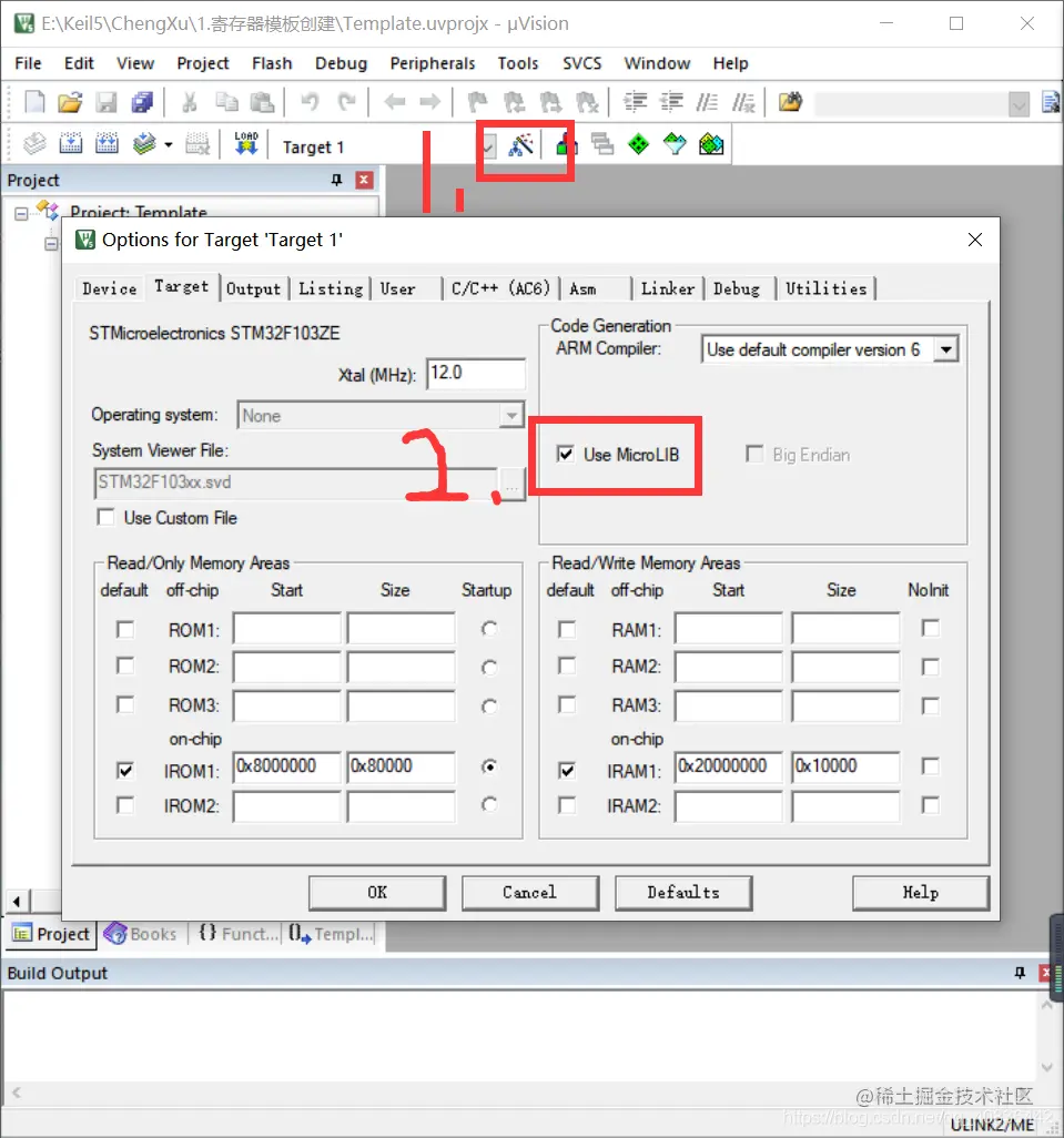 点击魔术棒,将Use MicroLIB打对勾,这个库用printf输出要用