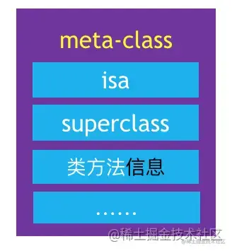 isa指针superclass指针类的类方法信息。- 同时我们知道
