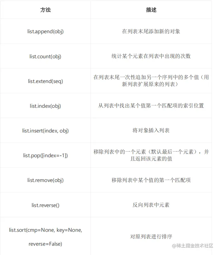 问题的中涉及的 python 列表方法都已经在上面的表格里面
