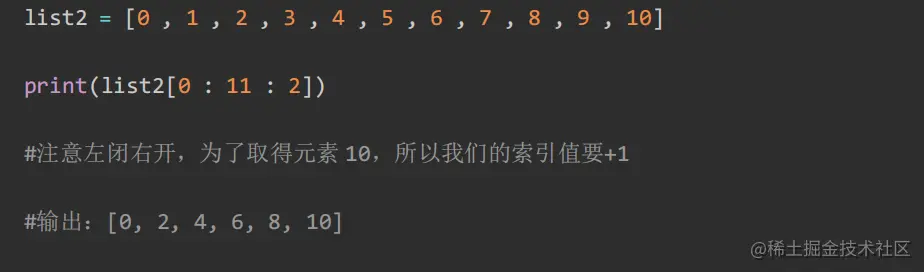 假如有一组从 0-10 的列表,我们只想要这个列表里面的所有偶数元素,那么该怎么取值呢?