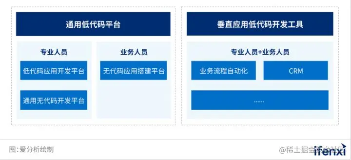 爱分析认为,**随着数字化转型进程的推进,未来所有数字化应用开发都会逐步走向低代码化。**而针对不同的应用开发场景和使用人员,将衍生出不同类型的低代码开发工具,包括具备通用应用开发能力的低代码开发平台和解决某些垂直应用定制化开发需求的低代码开发工具。