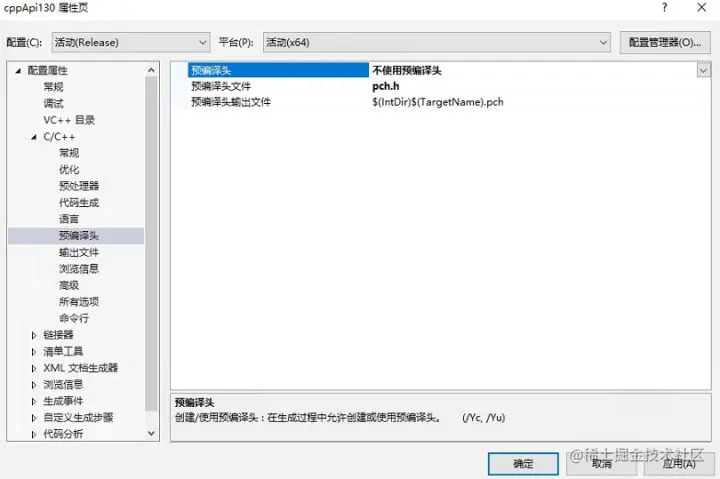 C/C++ -> 预编译头:选择不使用预编译头。