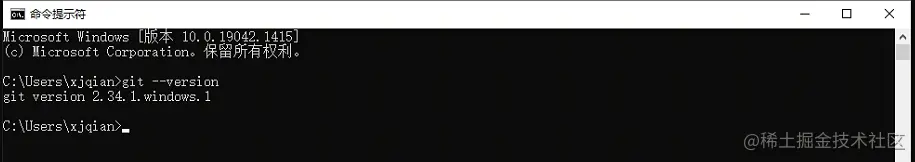 下载后双击一路默认安装即可,在cmd中运行git --version,显示如下图所示版本信息即表明安装成功。