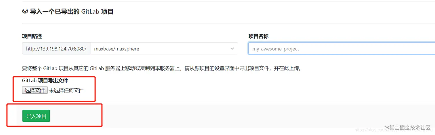 2.在新的gitlab上创建项目,并导入该tar.gz包