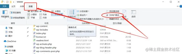 首先打开VS Code软件,在软件上方任务栏选择“打开文件夹”,依据WordPress的安装路径,找到wp-config.php文件。此处有个小技巧,如果系统未能显示所有文件的扩展名,则可以在文件夹上方的“查看”选项中,将“文件扩展名”勾选,就能显示出文件的扩展名。