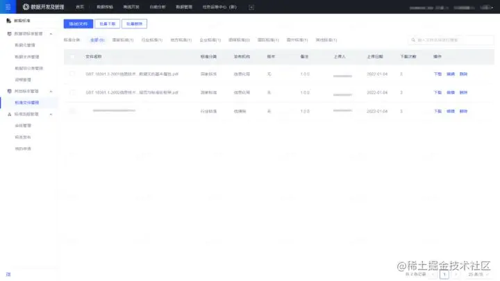 同样,数据标准也会以文件的形式存在,在除了国标、行标定义的标准外,企业内部为了便于各部门采取同样的数据建设规范,通常会使用文件来定义数据标准,以供各部门达成统一的共识。