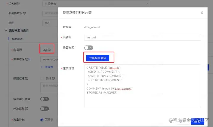 主要管理不同数据源的DDL语句模板,包含新增、删除、更新等,在模型设计时或离线开发时进行引用,根据选中的信息,替换模板中的参数。以mysql建表为例: