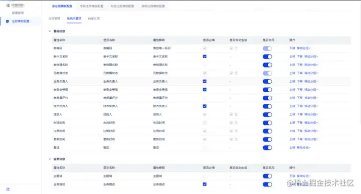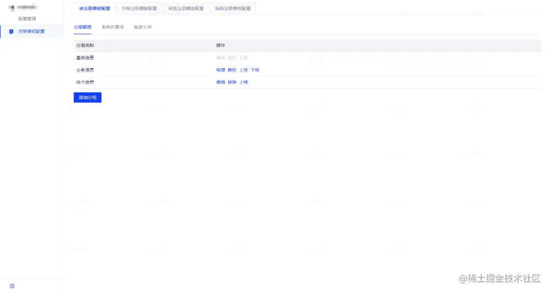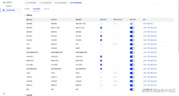 元模型的配置在我们的实践中主要包含对元模型分组管理、系统内置项管理、用户自定义项管理,目前已支持对表、字段、指标、标签的元模型设计。